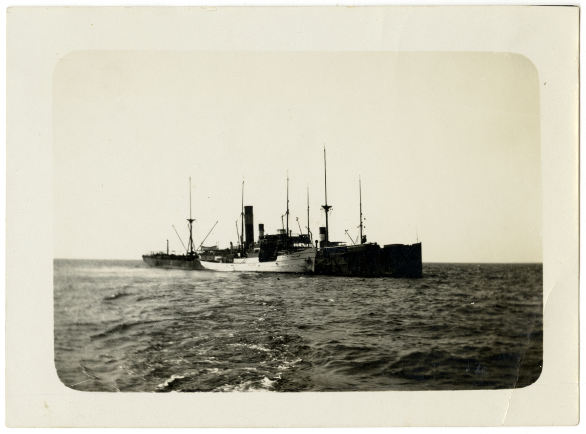 S/S BODEN bärgadas vid Häringe fyr utanför Oxelösund under Påskhelgen. Bärgningsbåtarna HERAKLES och HELIOS ligger på var sin sida och pumpar.