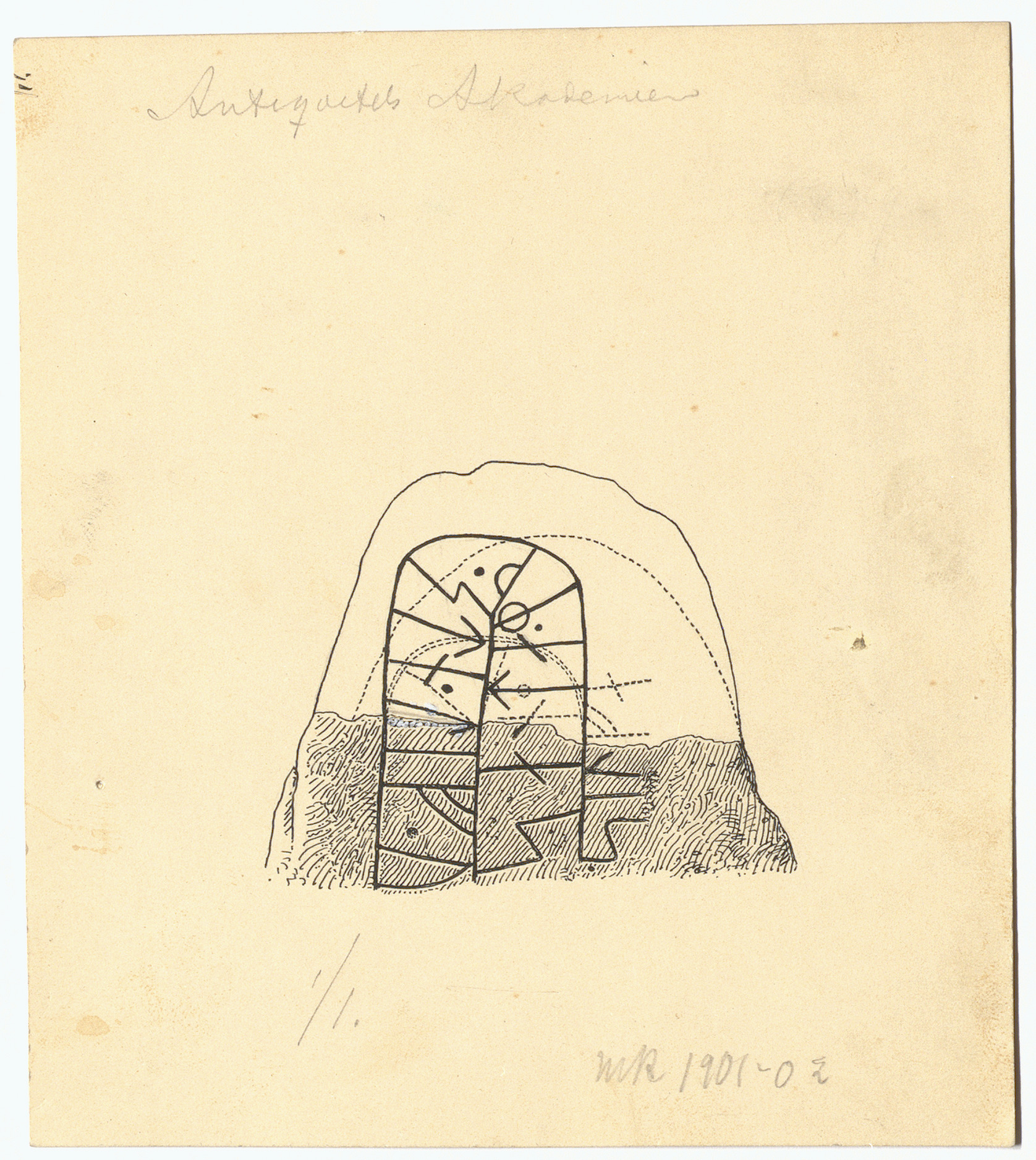 Beskrivning: Osignerat tryck. "Antequites Akademien. MR 1901-02. 1/1."