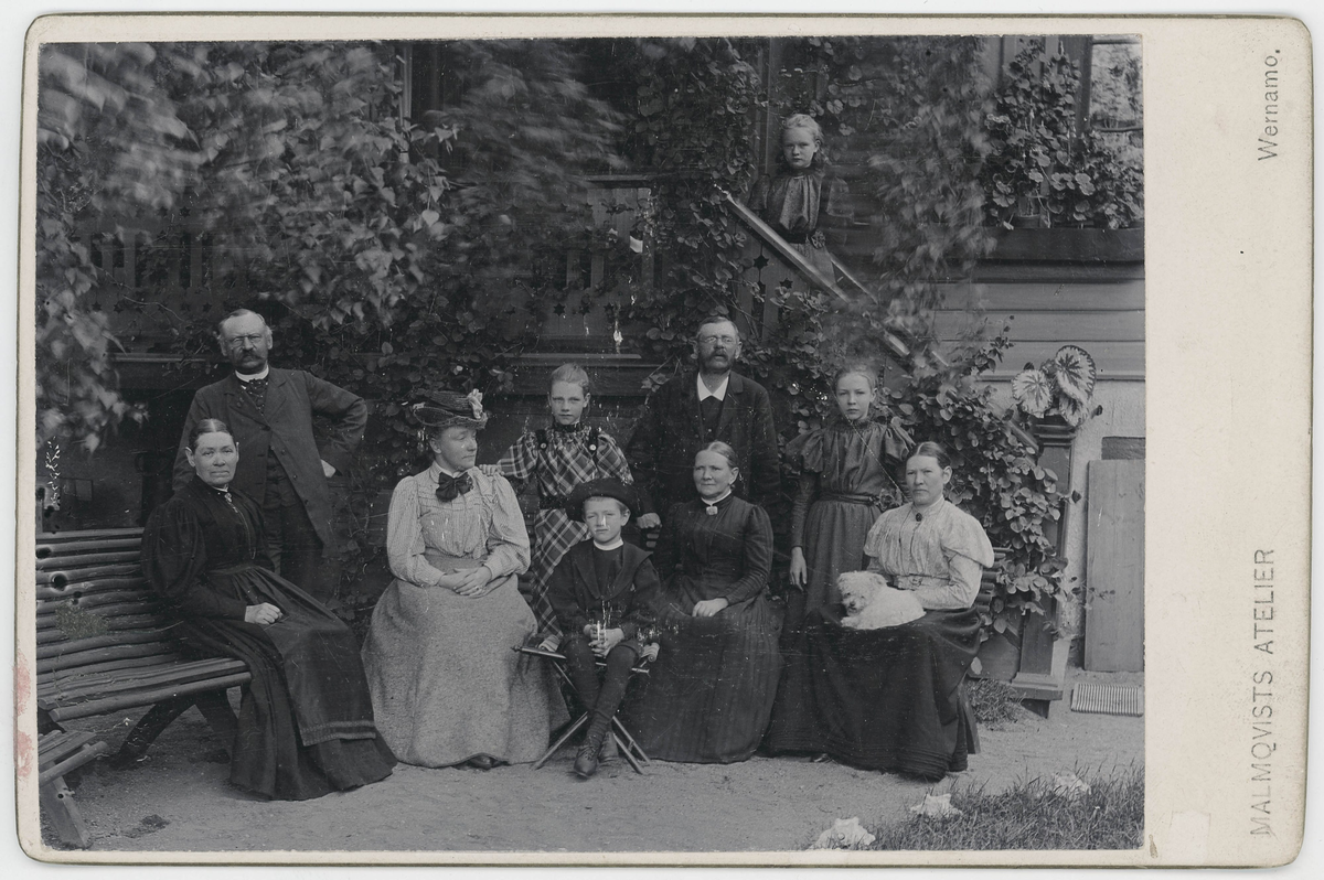 Porträtt på en grupp människor. Värnamo den 22 Juli året 1896 eller 1897.