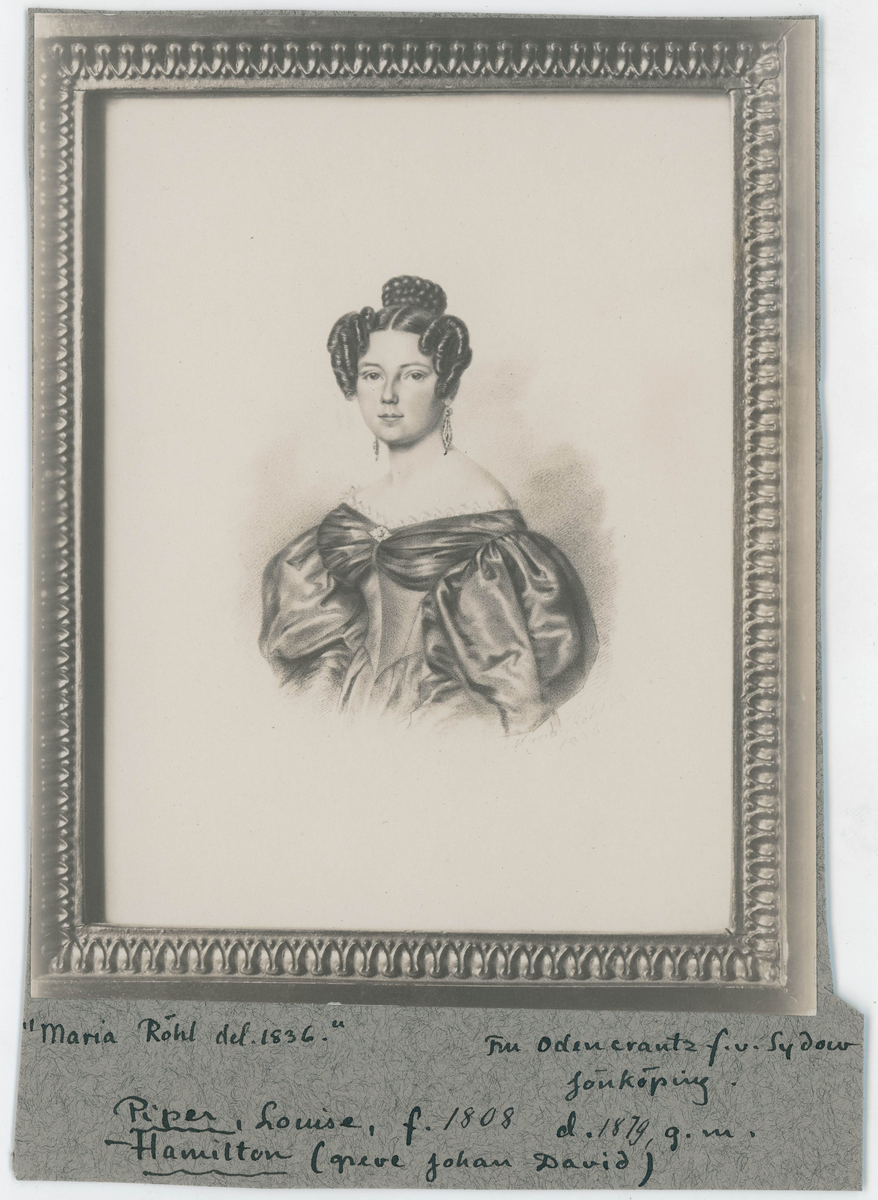 Porträtt på Louise Piper gift Hamilton. Född år 1808 och död år 1879. Gift med greve John David Hamilton.