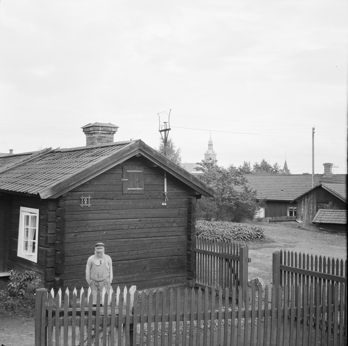 Falun, gård med Bergslagsmärket vid Bergsmansgränd och O. Haglund 1921.
