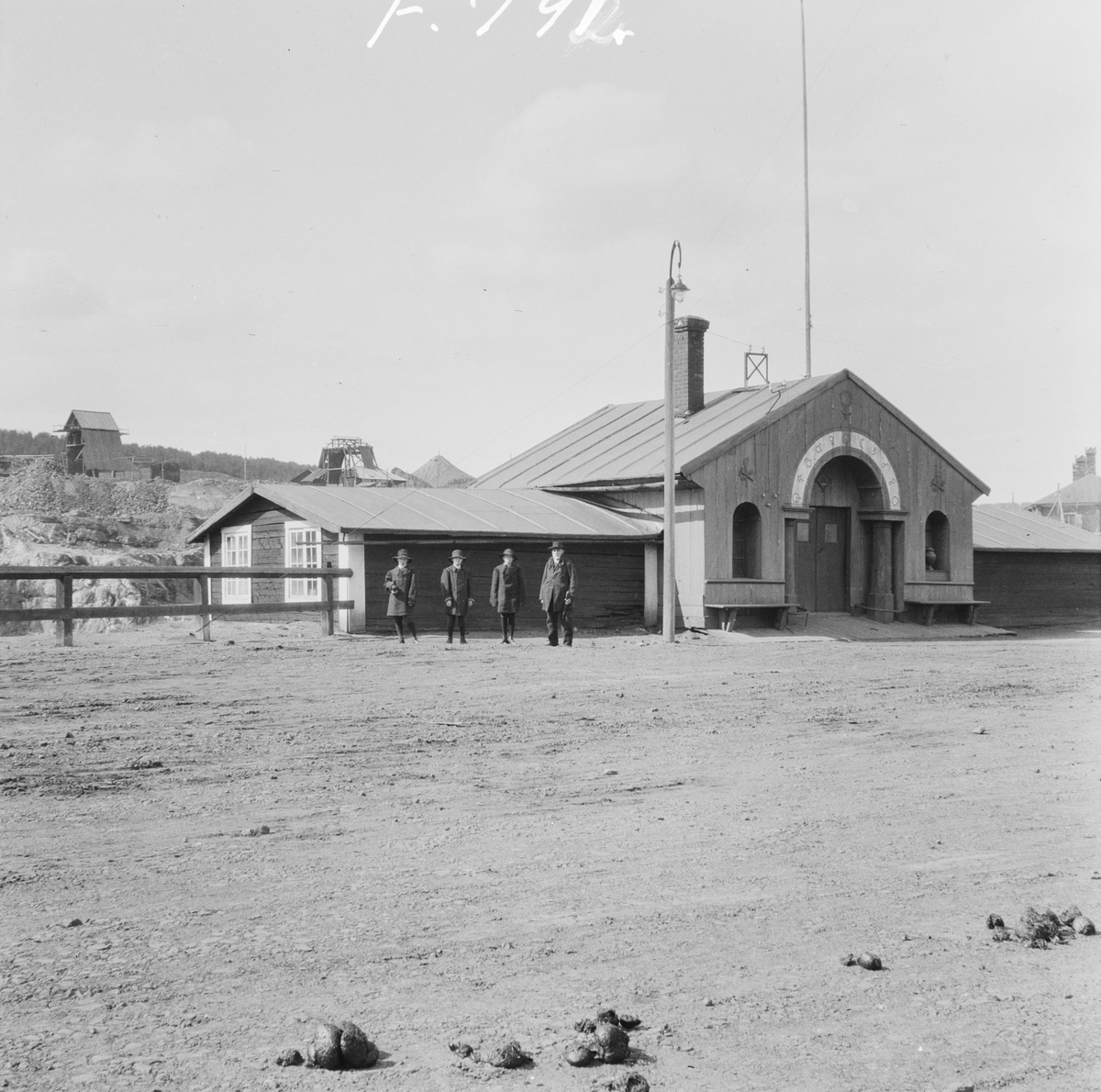 Falun, gruvan, anfarten, Stigare* Bergström och tre ynglingar.