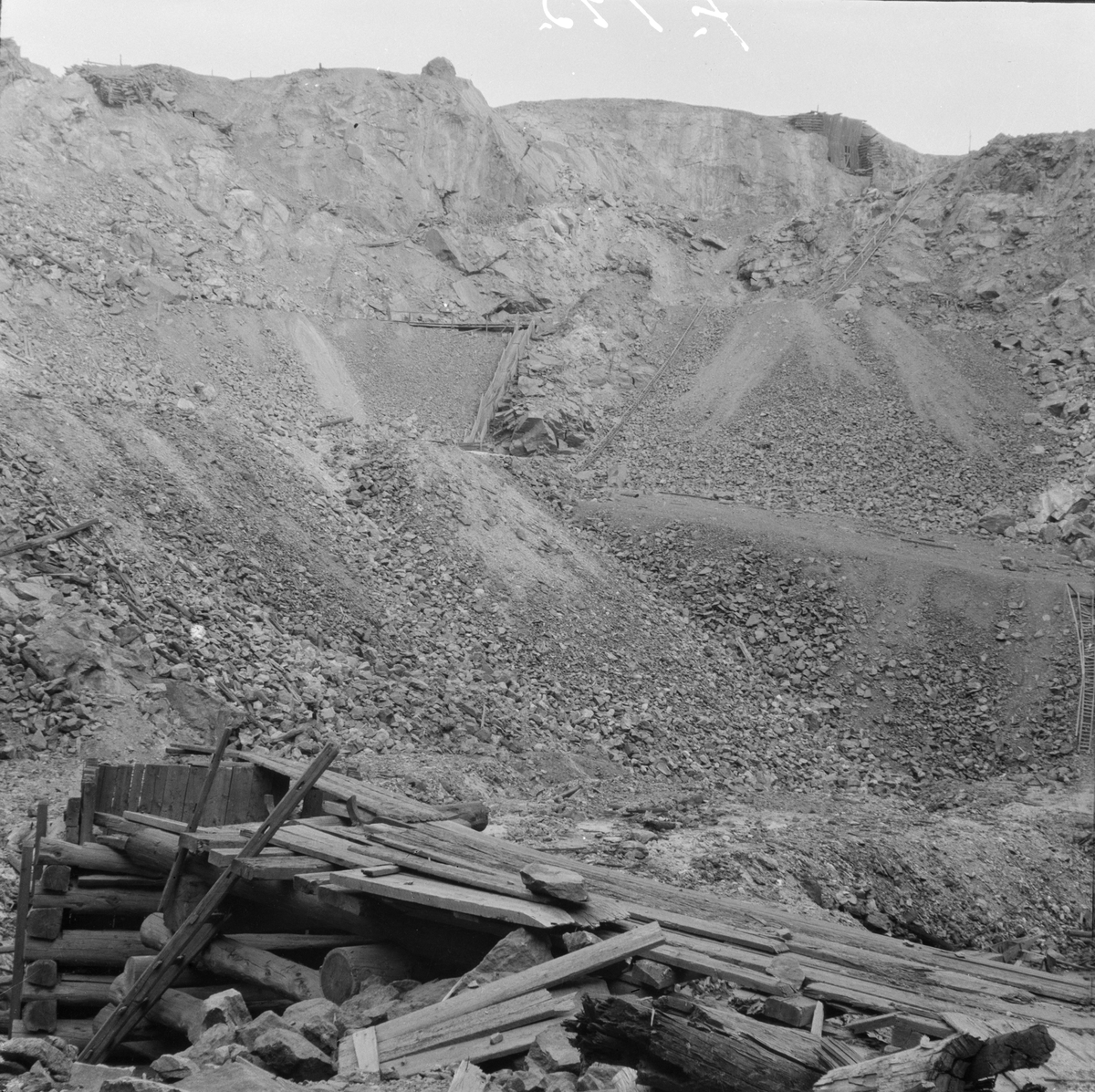 Falun, nere i Storgruvestöten, gammalt stockverk i förgrunden 1914.