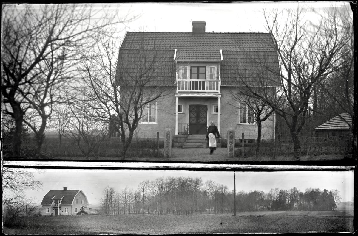 Titel: Kvinna framför bostadshus