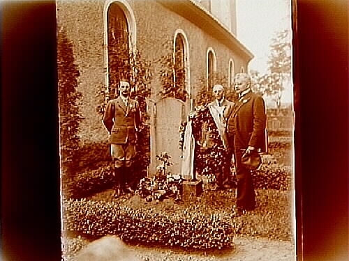 Tre män vid Djurklous grav, Elmkvist, von Horn, Greve Birger Mörner. Kransnedläggning.