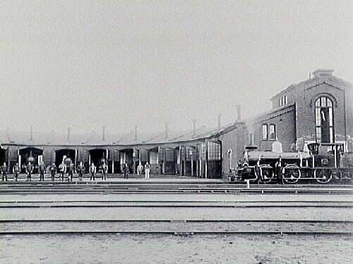 SJ lokstall och verkstad 1900.