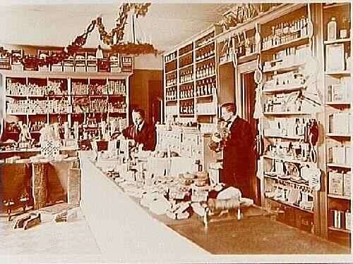 Västra Färghandeln, affärsinteriör med två expediter.