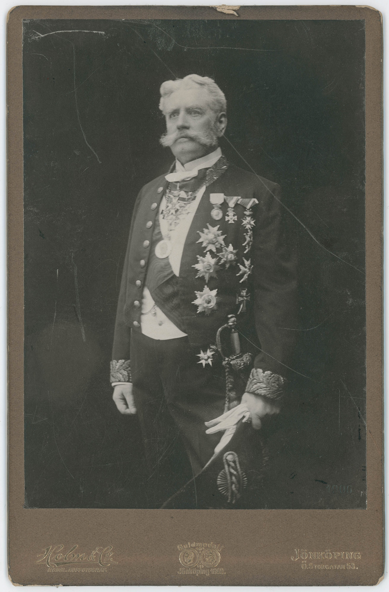 Porträtt på Nils Axel Hjalmar Palmstierna född 31 mars år 1836 i Stockholm. Landshövding i Jönköpings län år 1892 till år 1906. Gift 10 november år 1868 med Sofia Blomstedt född år 1845 21 december.