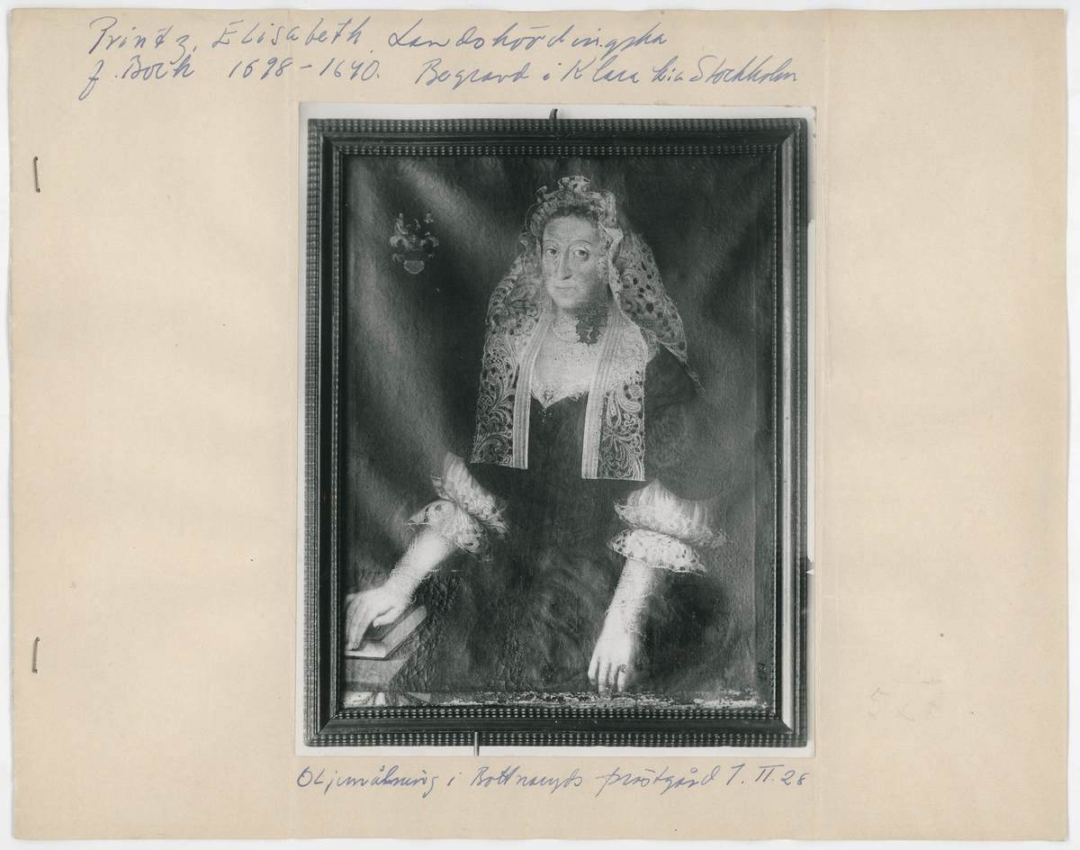 Porträtt på Elisabet Printz född von Bock år 1598 och död 12 november år 1640. Dotter till Lydeke Hansson von Bock och Armegard von Hagen,
