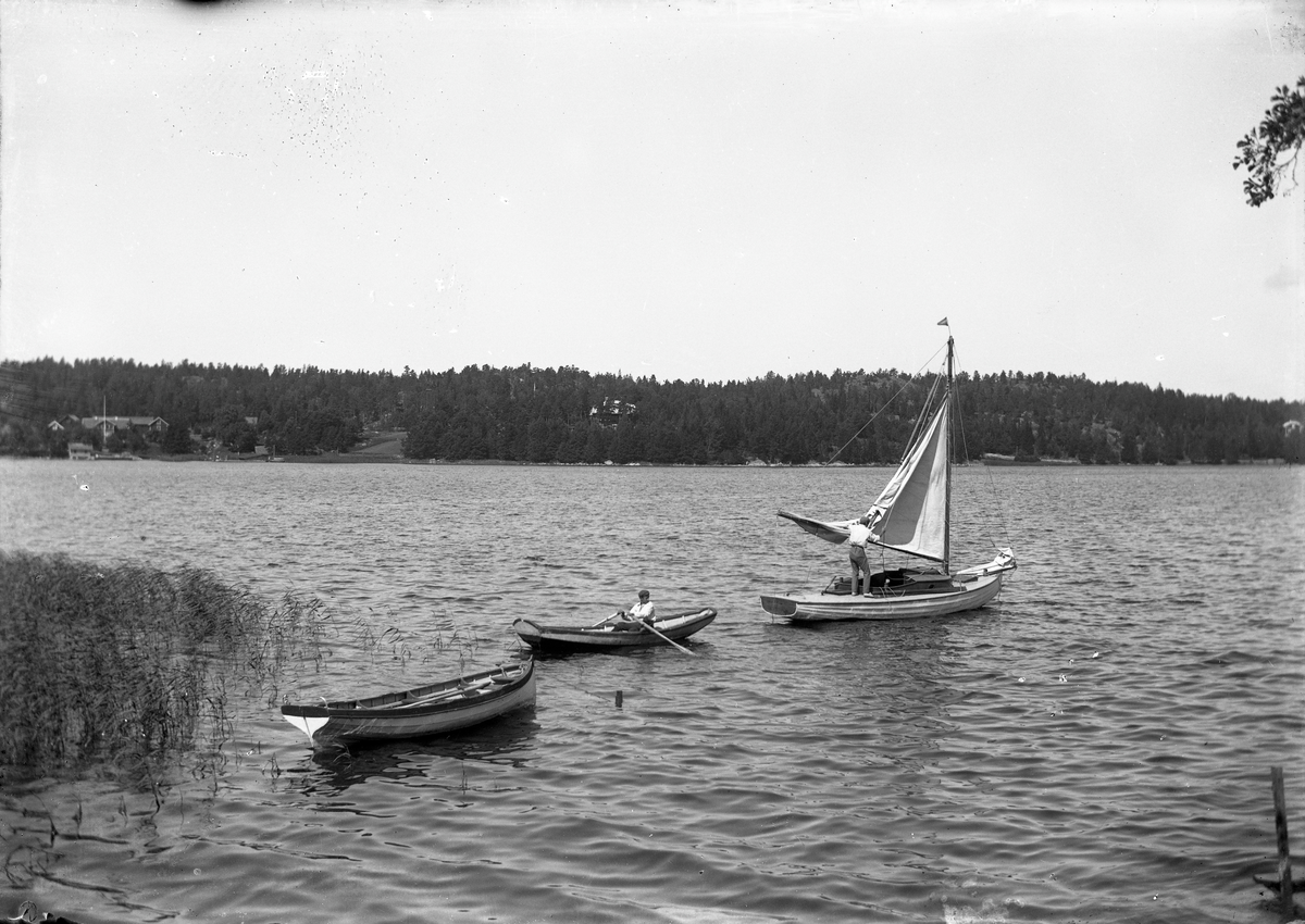 Segelbåten, roddbåten och ekan fotograferade sommaren 1908.