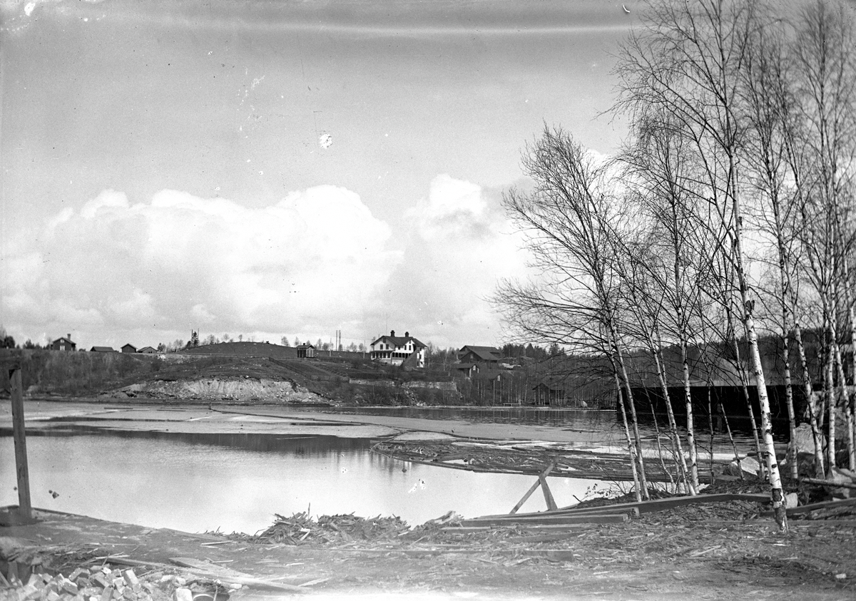 Foto märkt "Linghed". Vy över björk, sjö och bebyggelse.