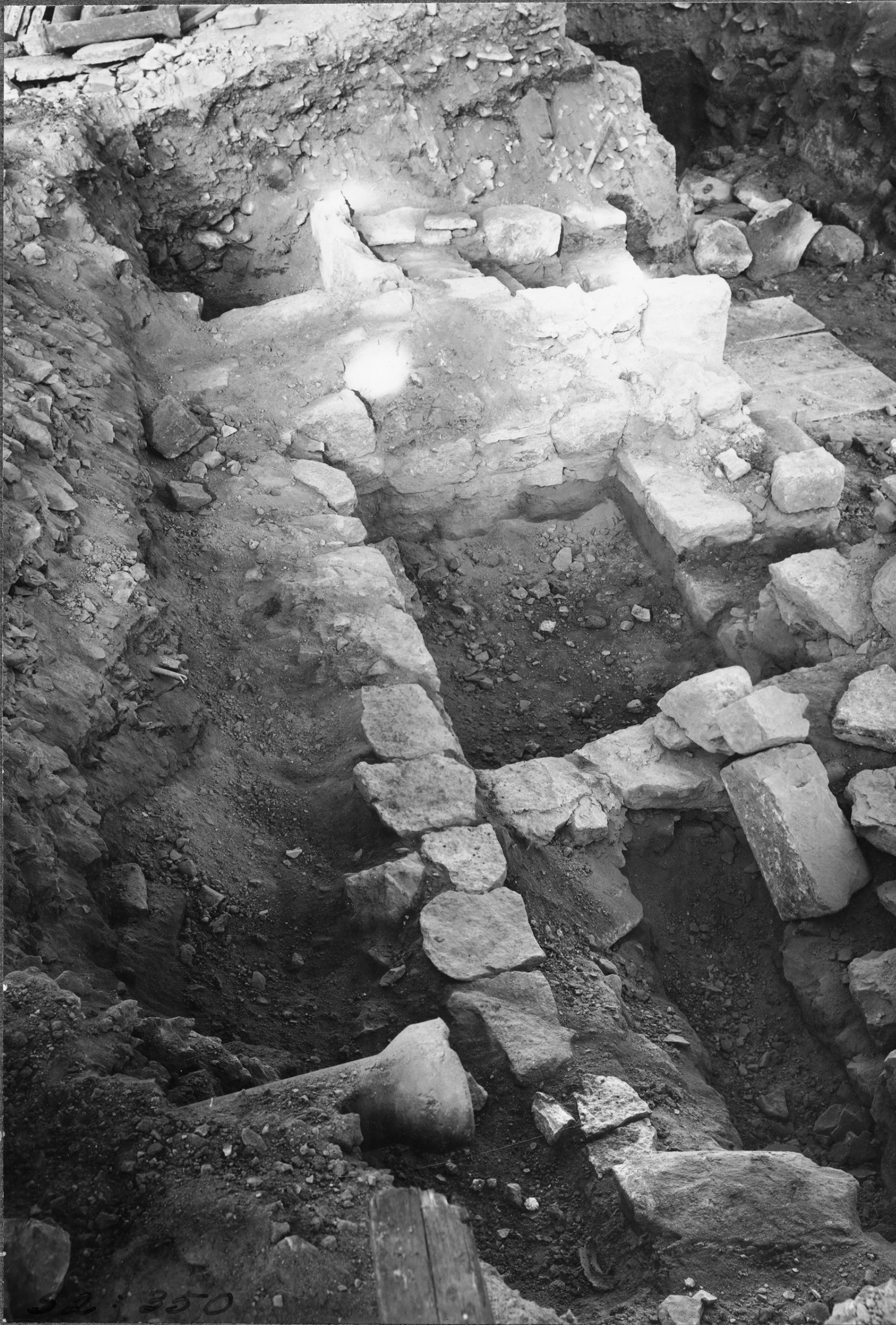 Grävning inom kyrkan, schakt X, västra delen från sydväst.