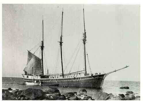 "Strandad skuta vid Galtabäck. John av Gävle" Omkring 1910.