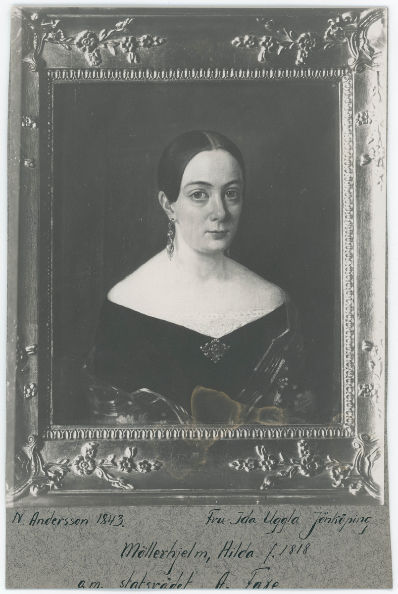 Porträtt på Hilda Möllerhjelm gift med A. Faxe, född år 1818 och död år 1897.