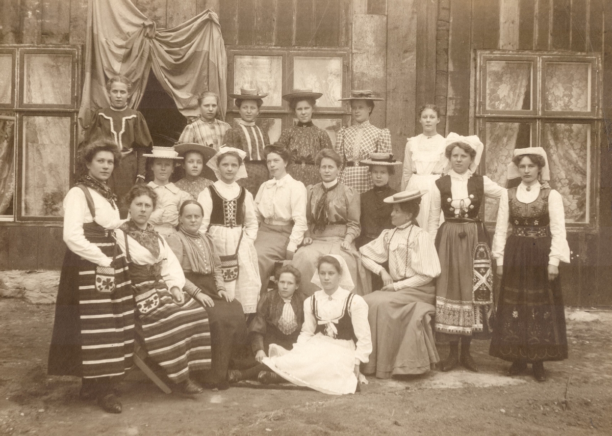 Bilden visar personalen vid Kalmar Tapisserimagasin och kan antas vara tagen på gården till de lokaler firman disponerade vid tillfället för fotograferingen. Firmans ägare, fröken Hilma Peterzon, bör vara den kvinna som är avbildad sittande i bildens mitt med en knuten sjal om halsen. Längst till höger står en yngre kvinna, som bör vara fröken Gerda Larsson (senare gift Brütte). Enligt uppgift: Sigrid Gustafson, översta raden 3:e från vänster.