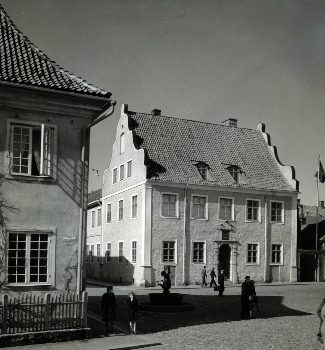 Dahmska huset. T.v. skymtar gamla biskopshuset från 1600-talet, som 1950 restaurerats i det inre.