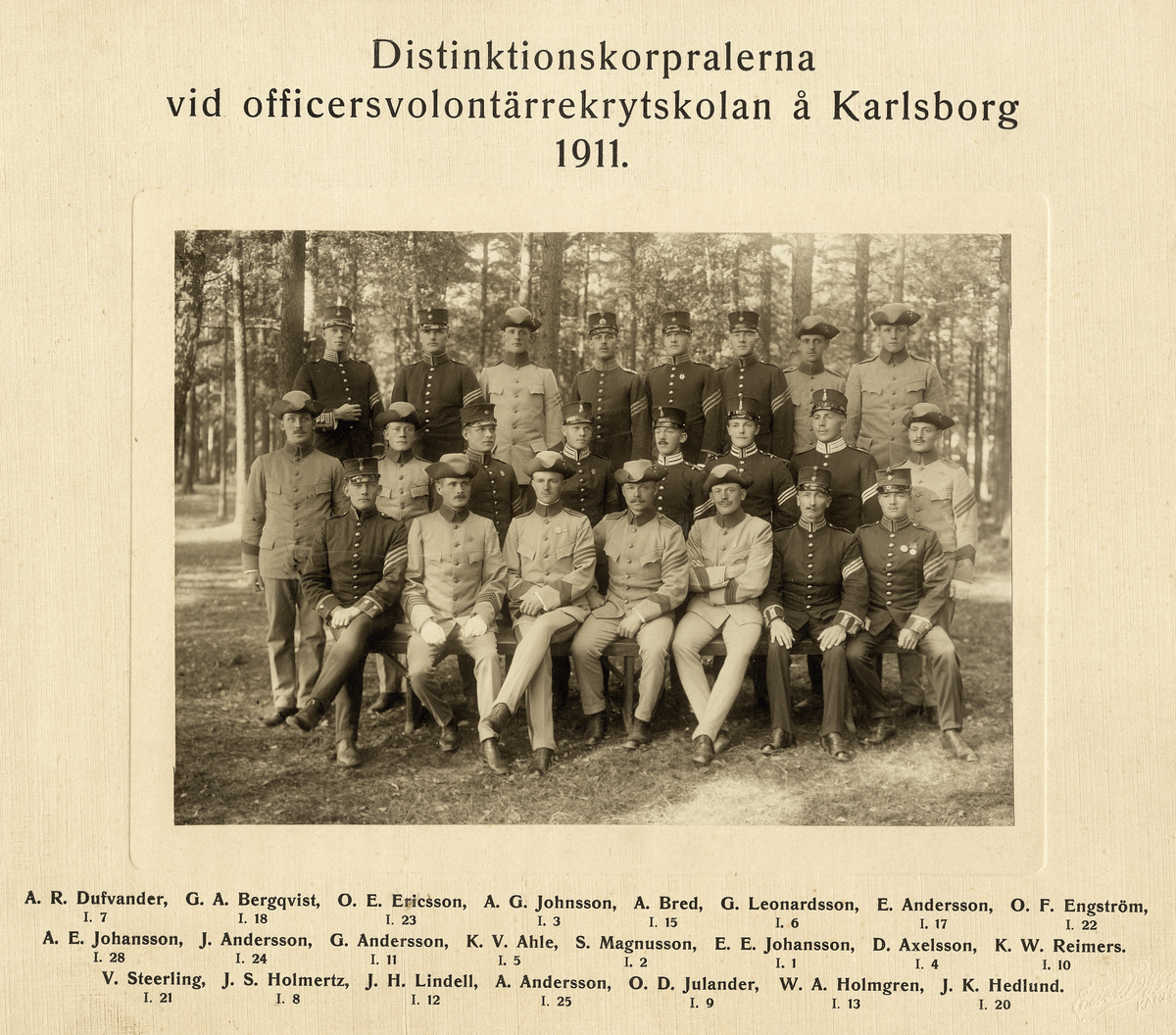 Distinktionskorpralerna vid officersvolontärrekrytskolan å Karlsborg 1911.