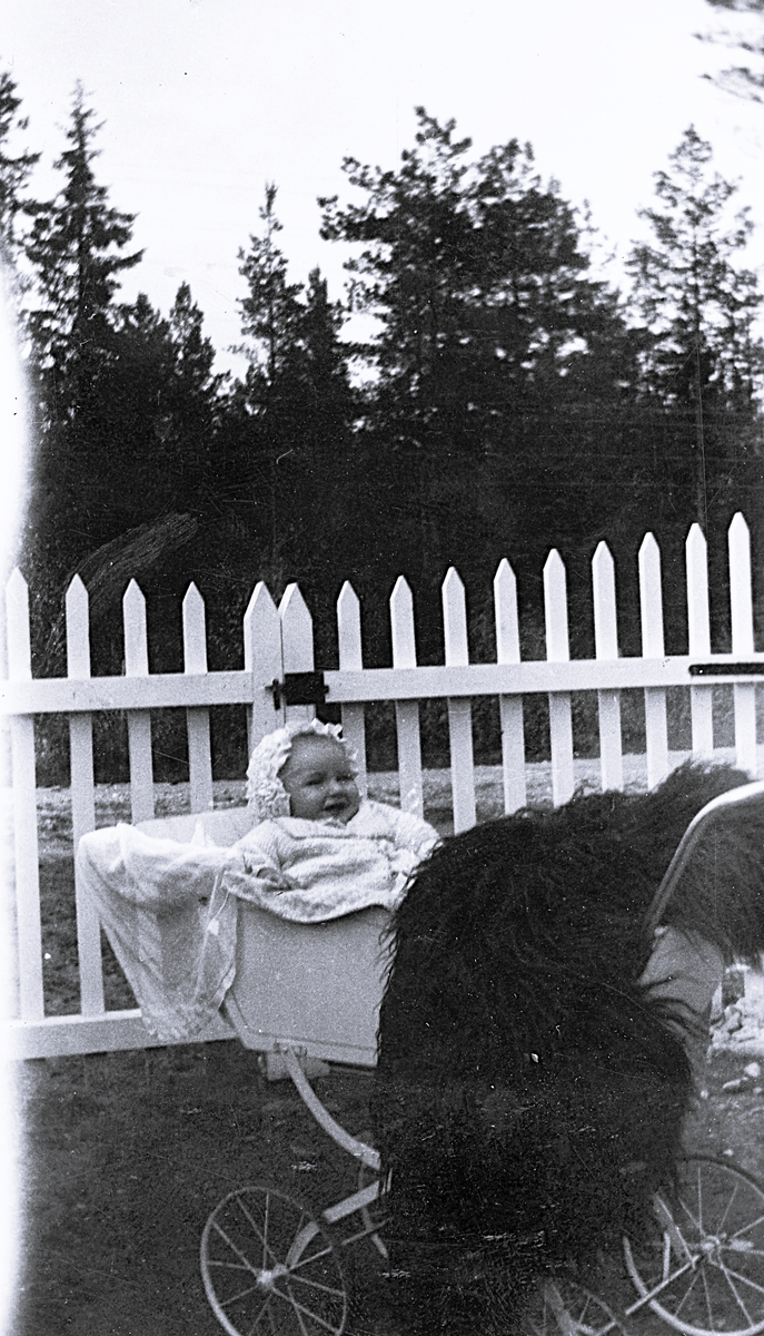 Foto av Rune i barnvagn, 12/7 1925 (enligt text baksida kort).