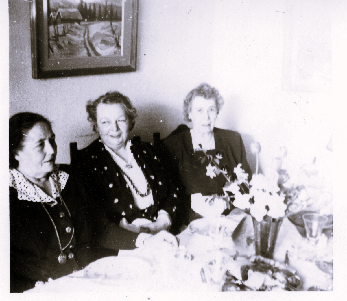 Titel: Foto av Olofs 35-årsfest på Gärdet? 1953. Fr.v Tora, Signe, Hulda (enligt text vid bild i album).