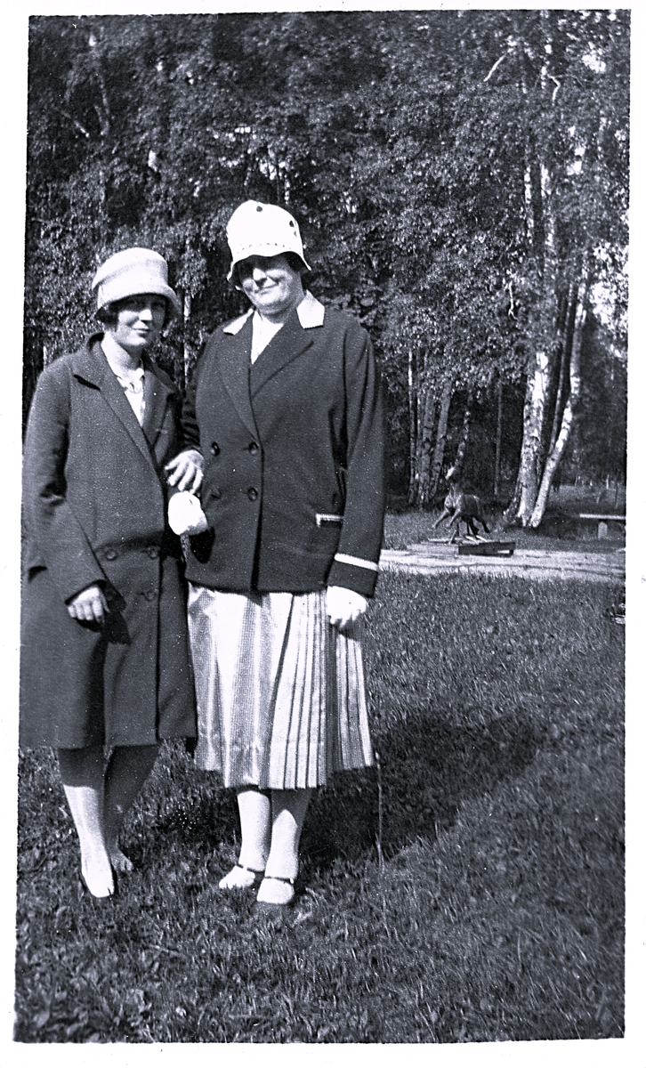 Foto av två kvinnor i en park. Bildtext i album: "Mor och dotter".