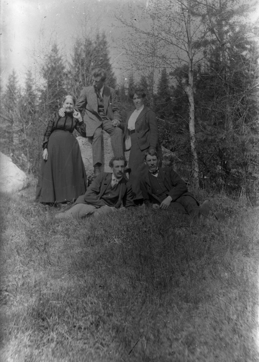 Gruppfoto, på stenen David Svensson, sittande till vänster Erhard Nilsson.