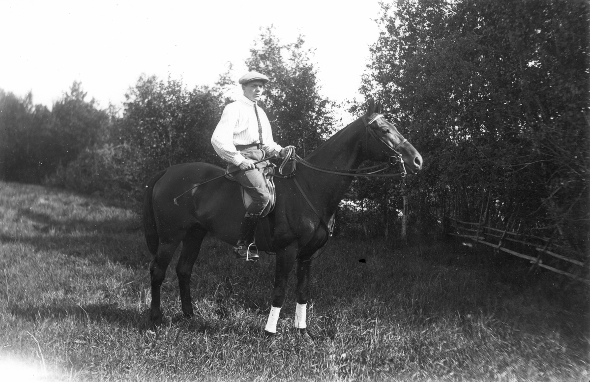 Okänd "ryttmästare" till häst på Lenninge herrgård.