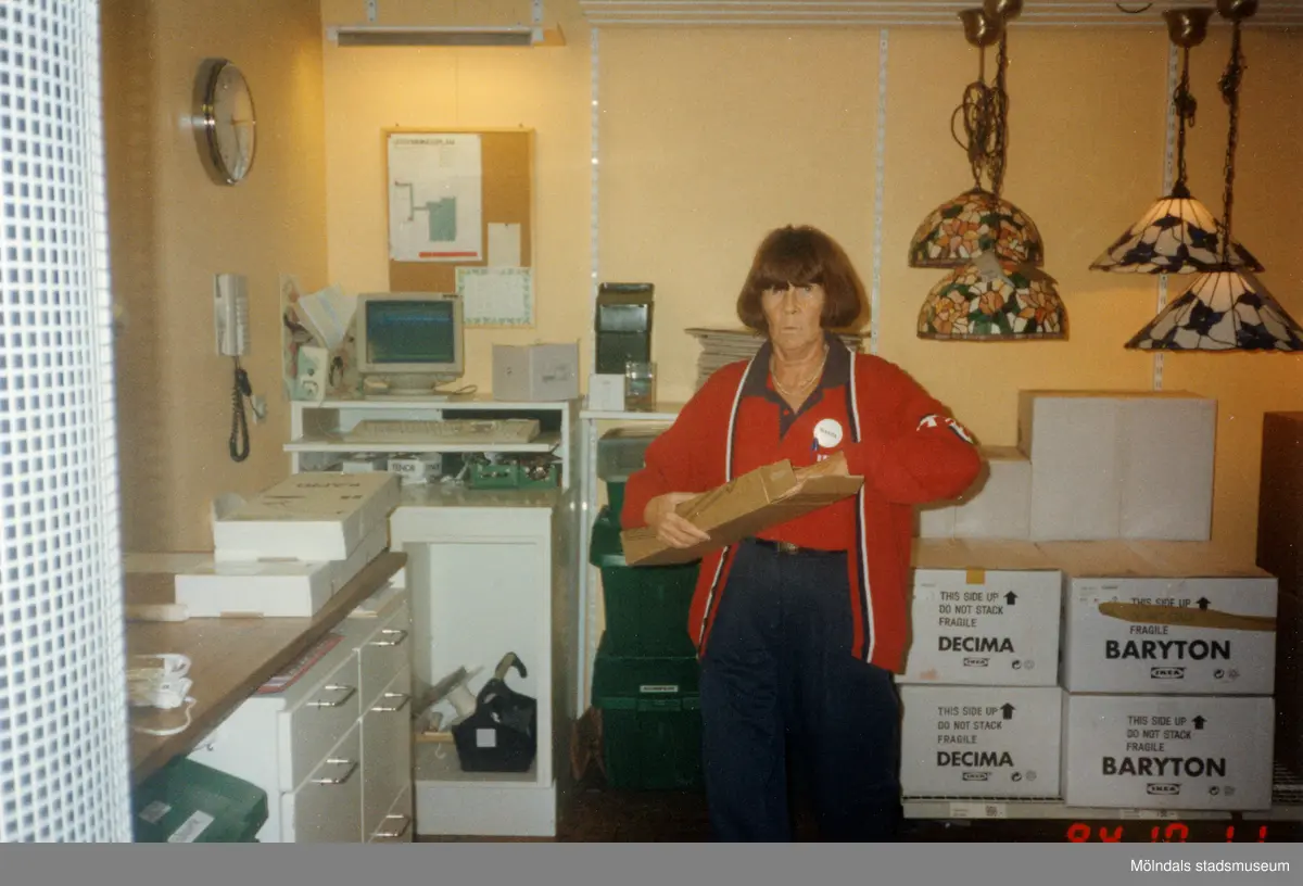 Maritha Eriksson på lampavdelningen i varuhuset IKEA i Kållered, Mölndals kommun, den 11 oktober 1994.