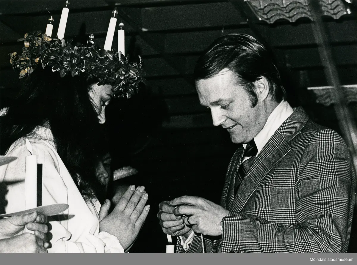 Björn Ogard och en lucia på varuhuset IKEA i Kållered, Mölndals kommun, okänt årtal.