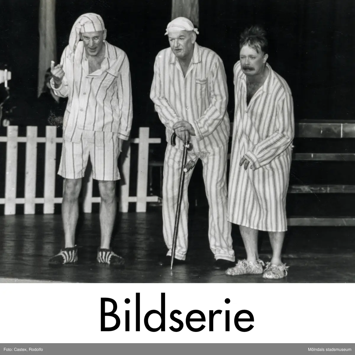 Serie om 23 svartvita fotografier som visar föreställning av Mölndalsrevyn på Möllan i Mölndal i januari 1989.