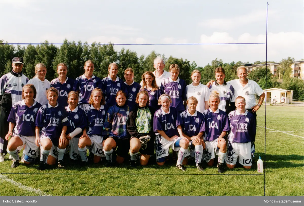 Lagbild av fotbollslaget Jitex BK på Kvarnbyvallen i Mölndal, år 1997.