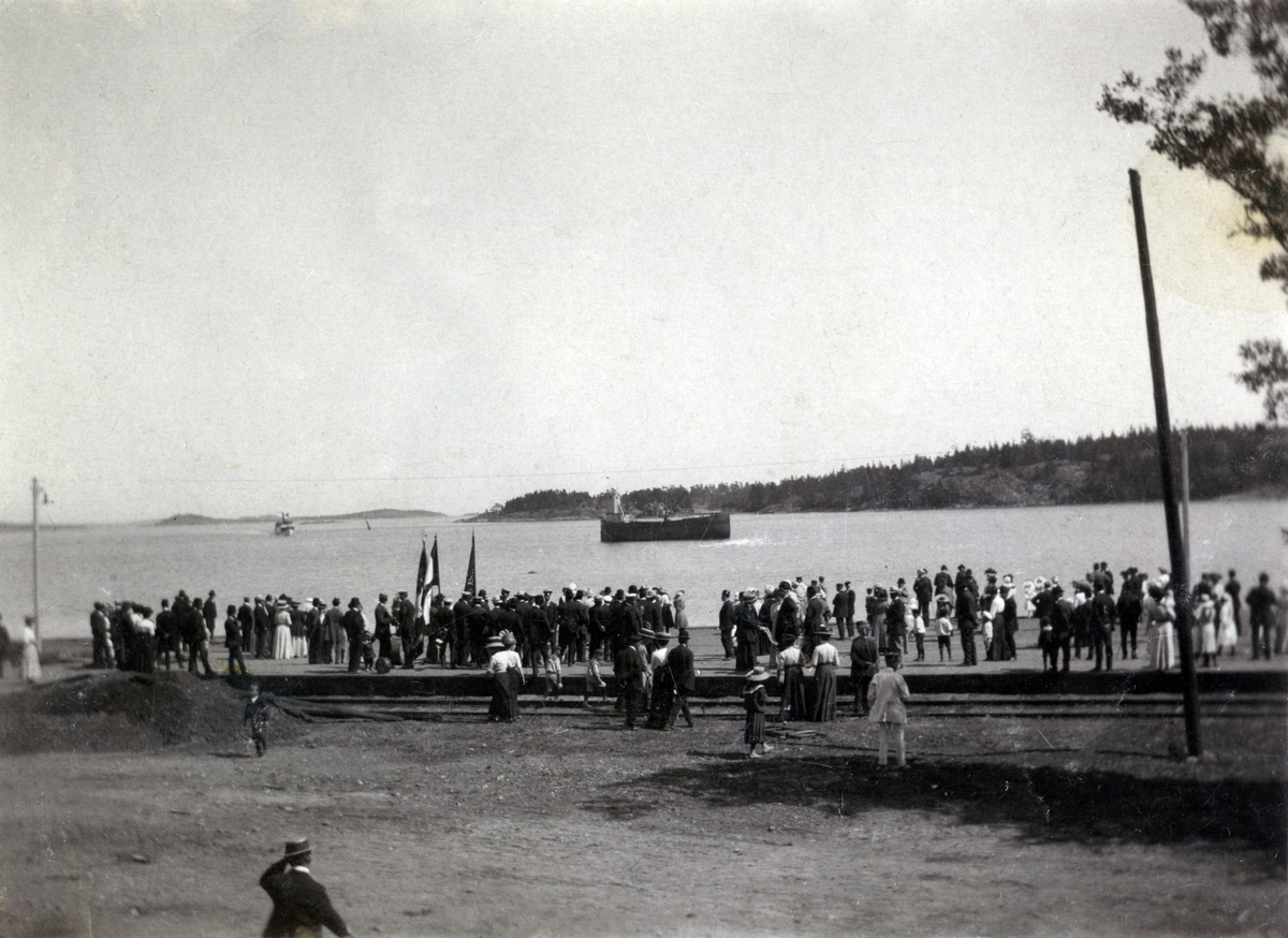 Folksamling på kajen