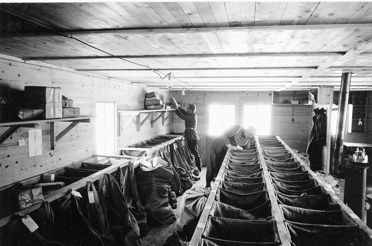 1940. Paketexpeditionen. Säckställen upptogo c:a 110 olika adresser.