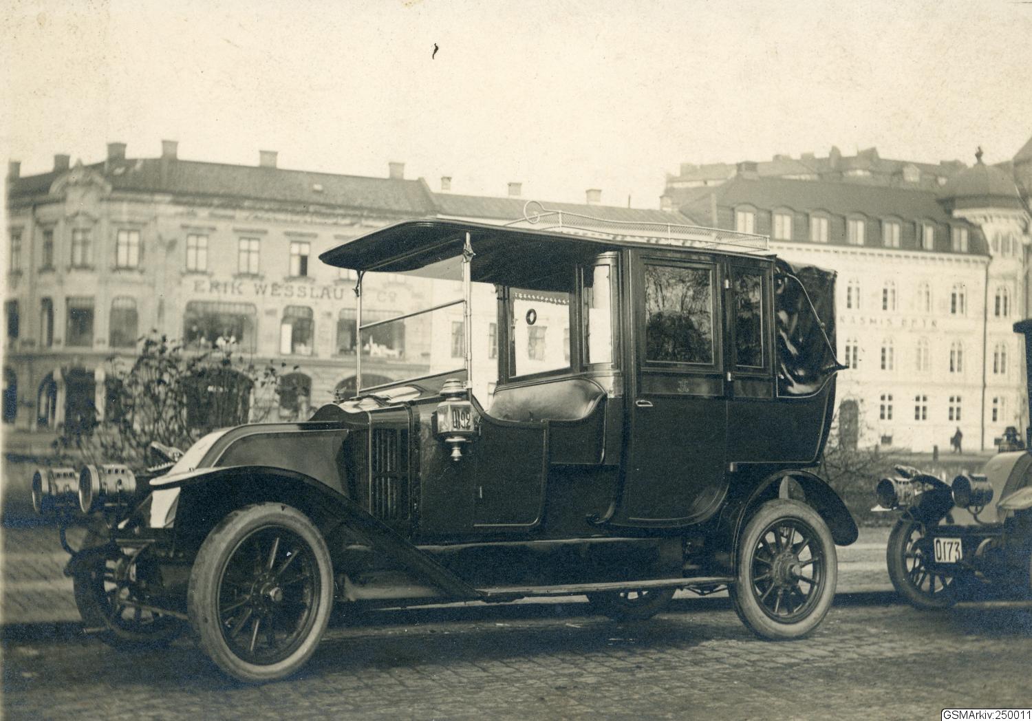 Droska, troligtvis en Renault, med registreing 092. Okänt vilket hyrvek den tillhör.