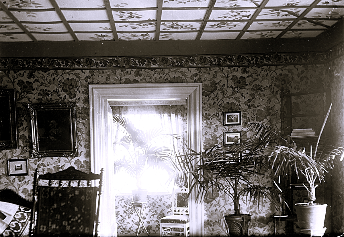 Foto av salongen på Gröndal 1897 (enligt text baksida kort).