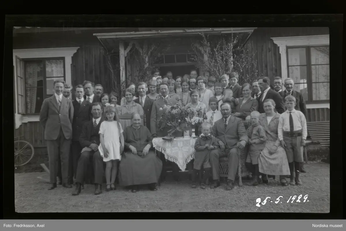 Fotografens föräldrar, Fredrik Vilhelm Eriksson (f.1854) och Anna Maria Larsdotter (f.1856) omgivna av släkt och vänner.