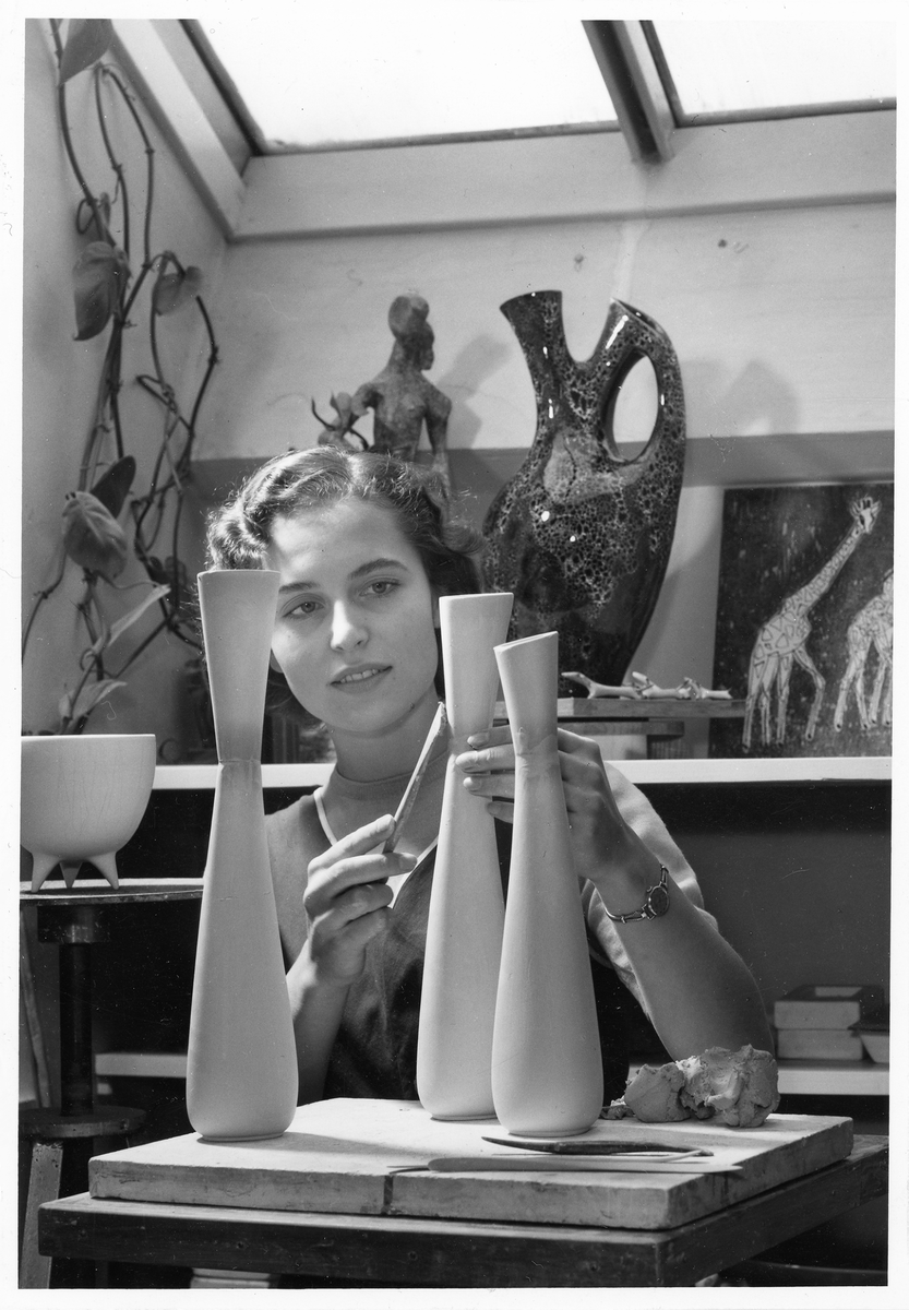 Porträtt av formgivaren Lillemor Mannerheim, på Gefle Porslinsfabrik.