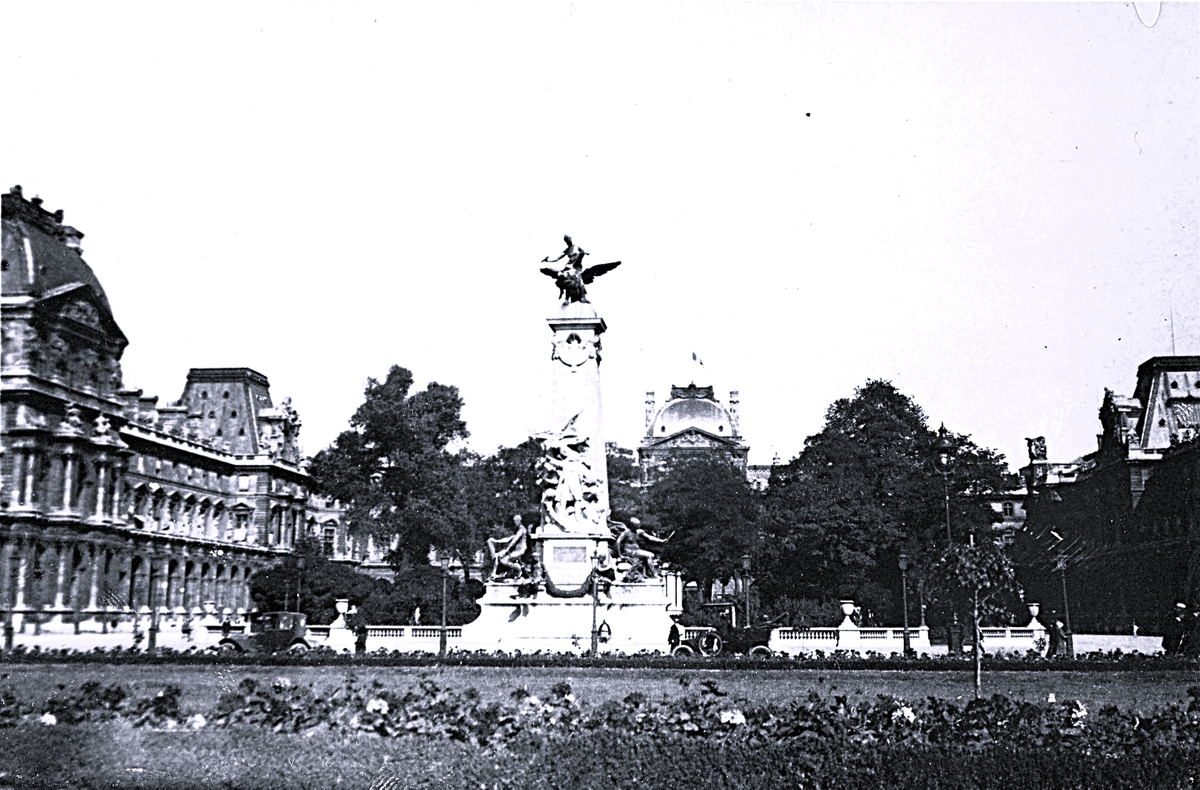 Foto av Gambettamonumentet som ligger på Place du Carrousel i Paris. Bild tagen 1921.