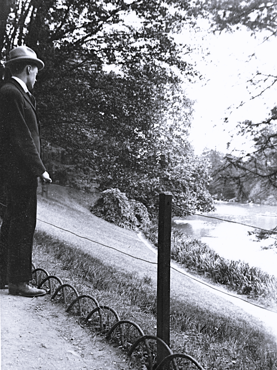 Titel: Foto av tandläkare Gunnar Högberg som står och tittar ut över en flod i Paris, 1921.