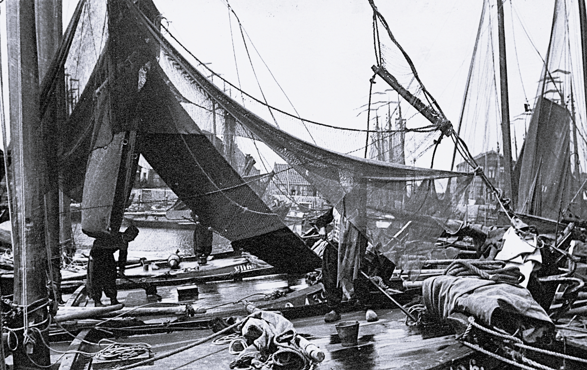 Titel: Foto av matroser som skrubbar däck på en båt, någonstans i nederländerna, 1924-25.