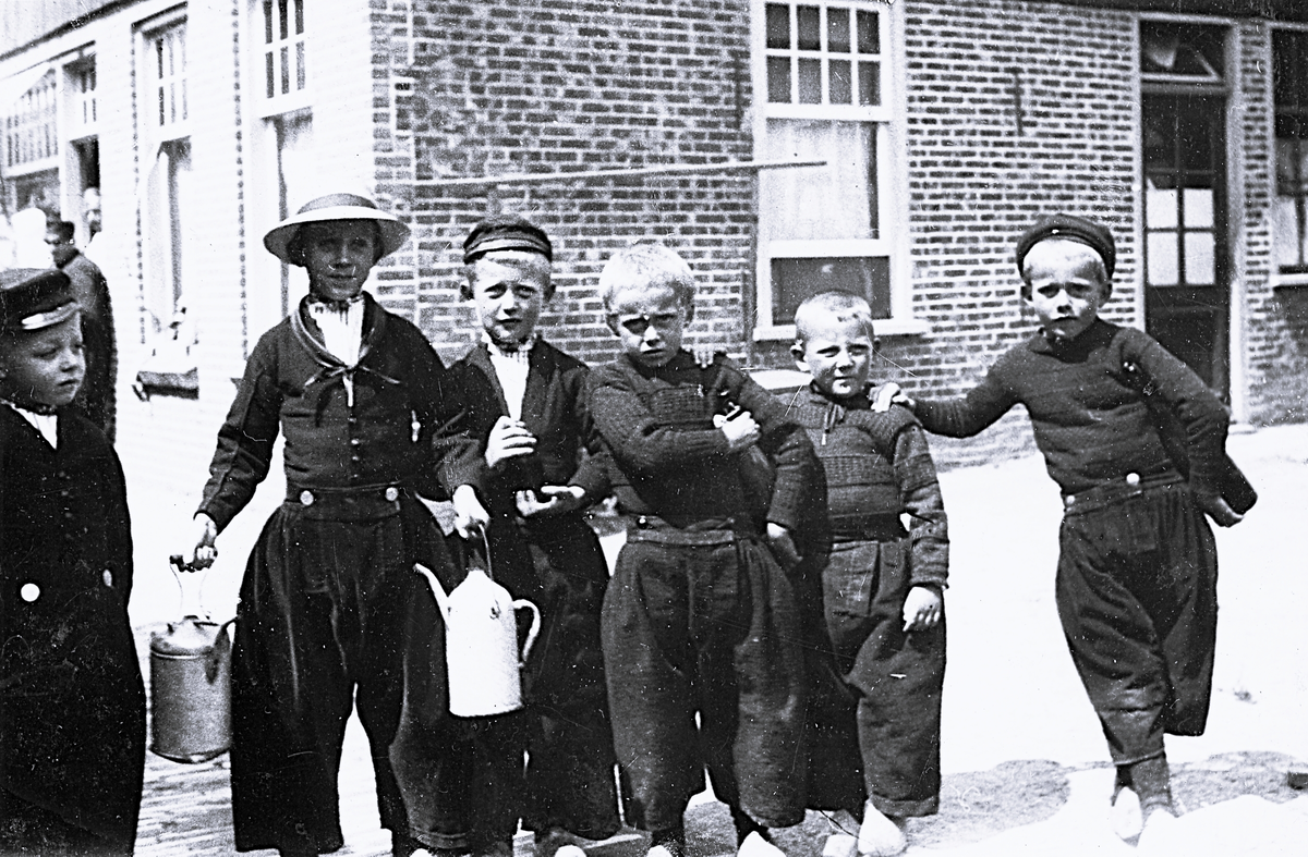 Foto av pojkar med speciella kläder och de karaktäristiska träskor som kännetecknar nederländerna, 1924-25.