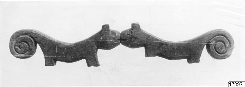 Handtag från ett snusbräde föreställande två jaguarer. Handtaget anses vara tre till fyra generationer gammalt.