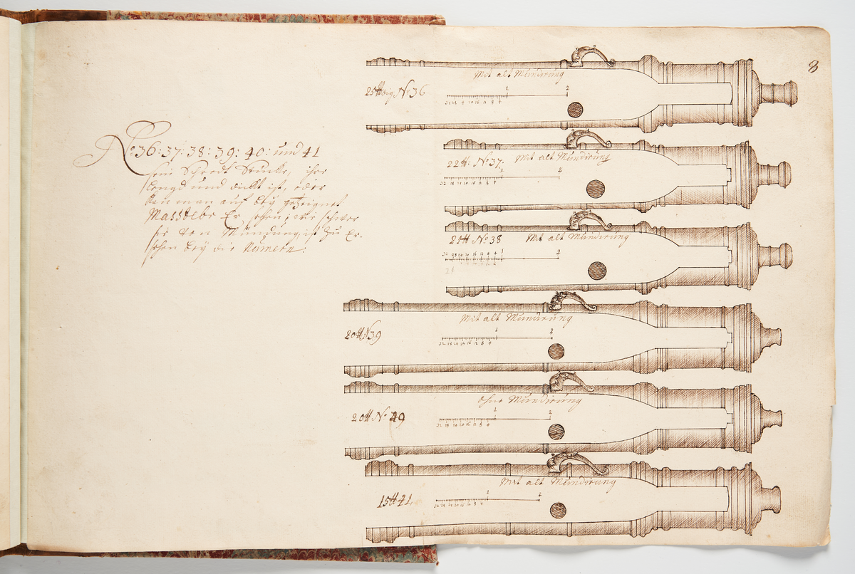 Avbildning av eldrör ur en inventeringsvolym som dokumenterar artilleribestyckningen i Reval.