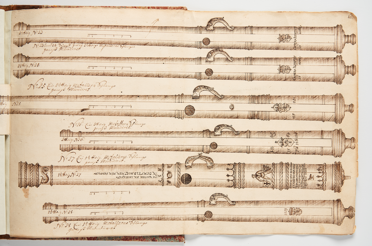 Avbildning av eldrör ur en inventeringsvolym som dokumenterar artilleribestyckningen i Reval.