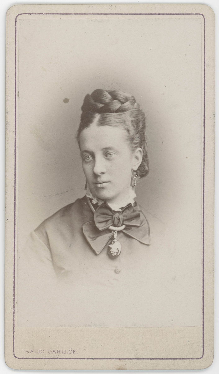 Porträtt på Hulda Ida Maria Mosén, gift Prytz. född år 1840 och död år 1885.