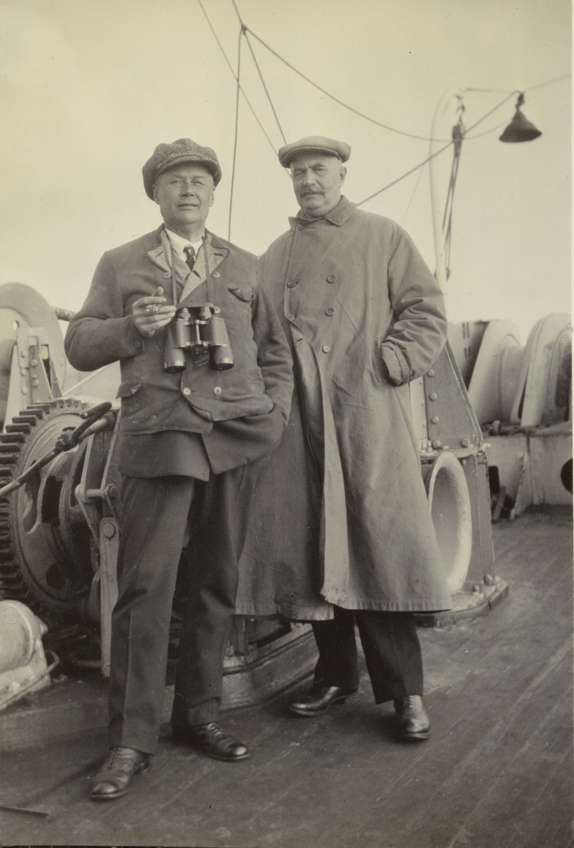 Två män på fartygsdäck. Ur album.
