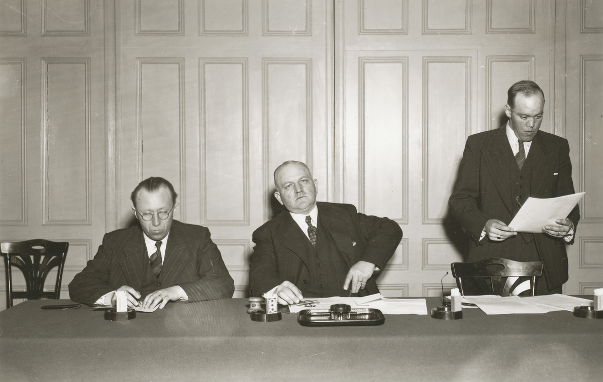 Riksdagsman Fritz Larsson, Gustaf Jonsson och redaktör Algot Ivarsson. 1940-talet.