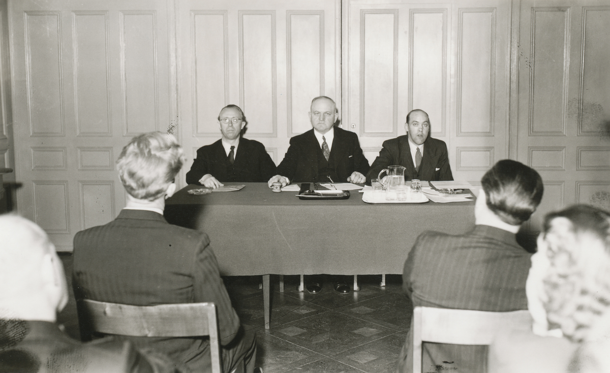 Landstingsman Fritz Larsson, riksdagsman Jonsson, Rockneby samt redaktör Algot Ivarsson, Kalmar 1940-talet.