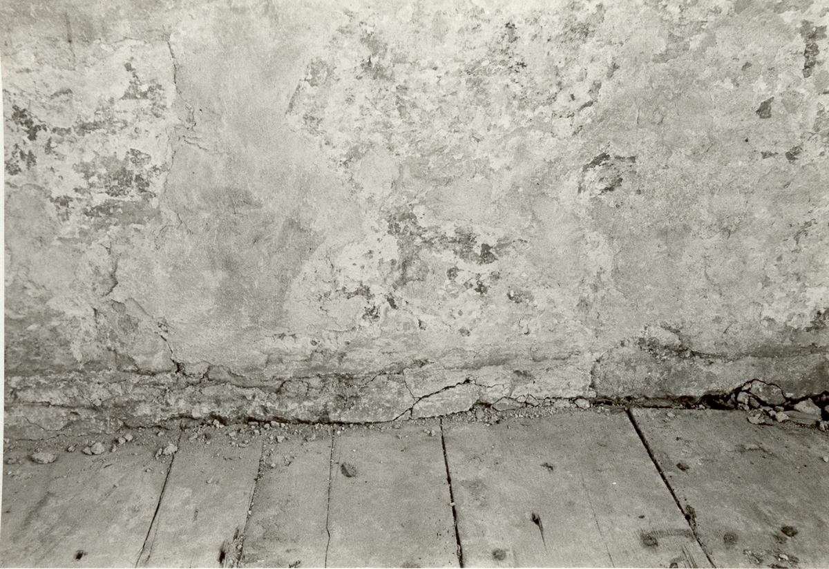 Putsen med röd målning ansluter mot det äldre golvet i ståthållarvåningen på Kalmar slott.