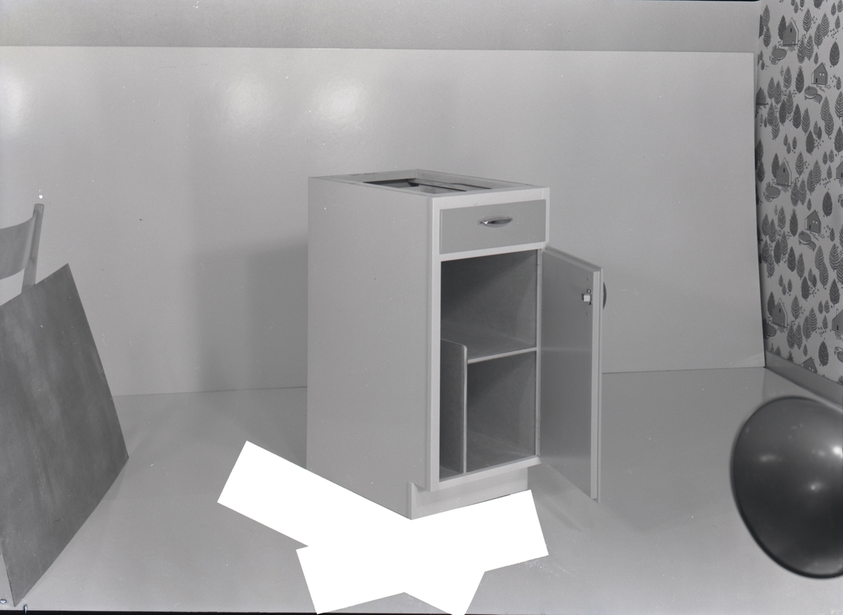Titel: I samband med att byggandet av hyreslägenheter tog fart under 1950-talet började byggmästare Ivar Tegnander tillverka egna köksutrustningar. Verksamheten expanderade och under 1960-talet bildades AB Standardsnickerier, senare Kalmarkök, som tillverkade köksinredningar för såväl flerbostadshus som villor. Verksamheten bedrevs i kvarteret Giraffen. När den upphört övertogs lokalerna av Kooperativa Förbundet som öppnade Obs! stormarknad.