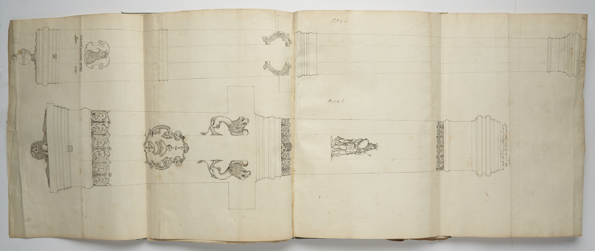 Ritning av eldrör från Malmö ur en volym som visar troféer och ett mindre antal äldre svenska metallstycken. Dessa ingick i bestyckningen i Stralsund 1671 samt i Helsingborg, Malmö och Landskrona.